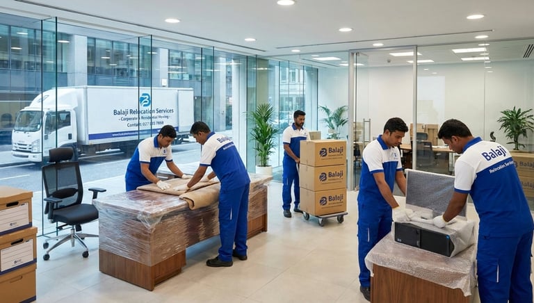 Insured and secure end-to-end office relocation services delivered with precision, confidentiality, and minimal operational disruption, Seamless office shifting by Balaji Relocation Services. We provide expert corporate relocation, IT equipment handling, and furniture setup to get your business running quickly.